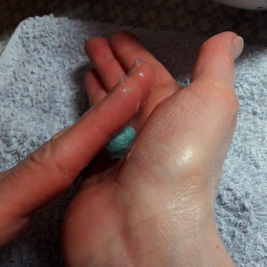 - 1er bol: eau chaude (bien chaude sans être brulante) et savon de Marseille râpé