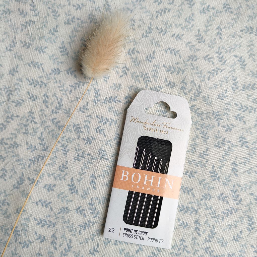 • La carte d'aiguilles sans pointe contient 6 aiguilles n°22 de la marque Bohin, référence française de qualité.